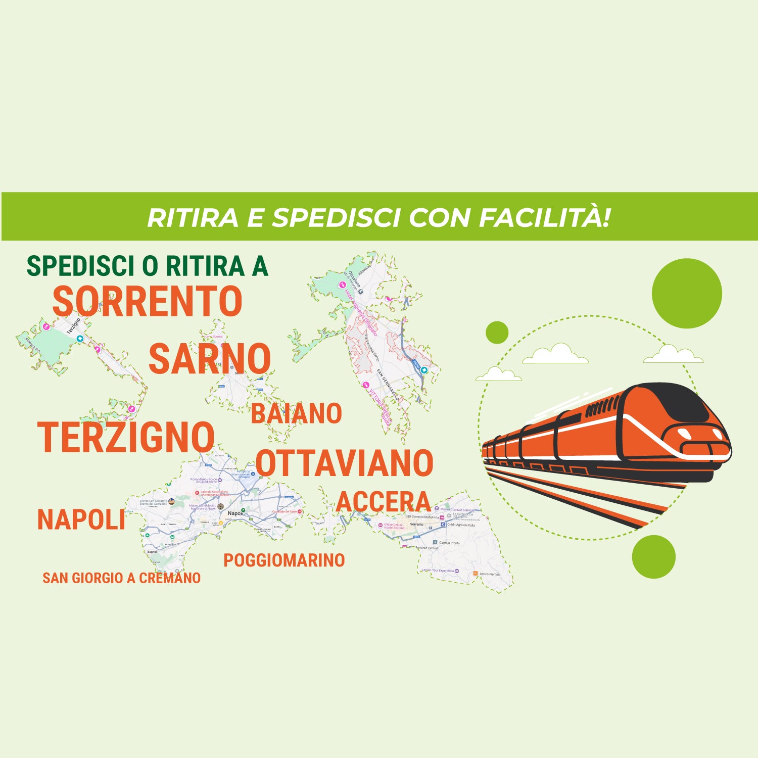 ABBIAMO NUMEROSI PUNTI DI RITIRO, situati strategicamente vicino alle stazioni della circumvesuviana, per rendere più semplice e veloce il ritiro e la consegna dei pacchi.